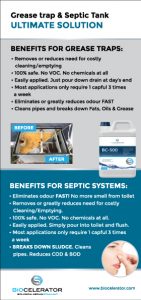 Les solutions actuelles parfument ou masquent l’odeur des toilettes, des fosses septique, elles peuvent introduire des bactéries étrangères qui ne sont pas naturelles ou saines. Biocelerator élimine les odeurs en 30 secondes en versant simplement un bouchon dans les toilettes et en tirant la chasse d’eau.